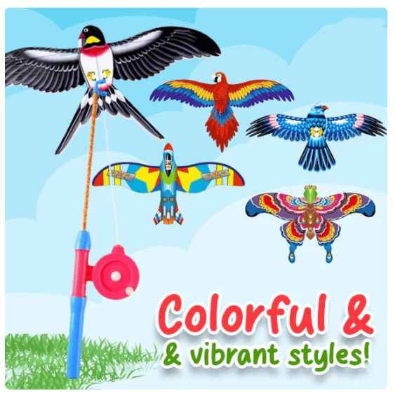 Easy to Use, Endless Fun: Designed with kids in mind, our innovative fishing rod-style handle makes launching and maneuvering your kite a breeze. Say goodbye to complicated setups and hello to instant airborne excitement! Whether you're a seasoned flyer or a first-time adventurer, Fishing Rod Kid's Kite guarantees hours of enjoyment for the whole family.