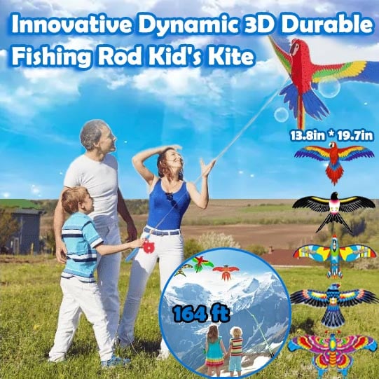 🔥2025 Hot Sale - 50% OFF TODAY🥰 Innovative Dynamic 3D Fishing Durable Rod Kid's Kite 🦜🦋